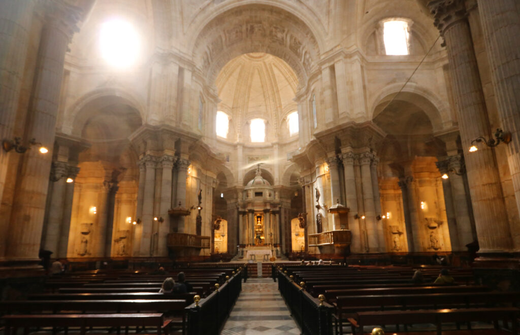 Skip: Cadiz Cathedral. There are some incredible cathedrals all over Andalusia: the cathedrals in Seville, Cordoba, Jaén, Malaga, Granada and Almeria come to mind. Cadiz’s Cathedral doesn’t rank among them. It is stunning on the outside but – and this sounds unkind – its interior is quite unremarkable. It might be one of the most forgettable cathedral interiors we’ve seen in Spain.
