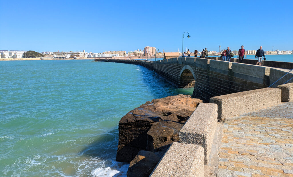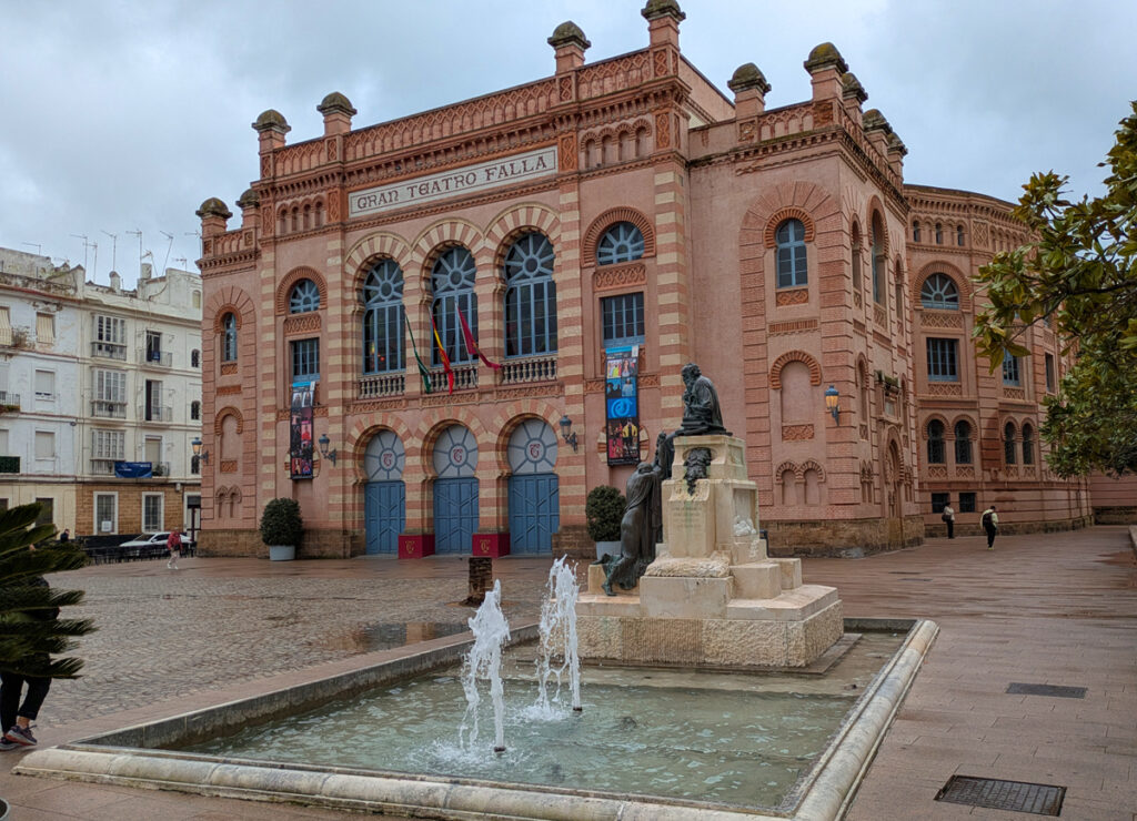 See. A few lesser-known highlights. Gran Teatro Falla, a Mudejar-style building (completed in 1905) that serves as the city’s theatre. A beautiful building. Plaza de la Constitución, just outside the walls of the old city. The city walls here are very impressive and you can understand the layout of the city: this is a peninsula and this was the only land entrance. Other than this land entrance, the only other way to access the city is by water.